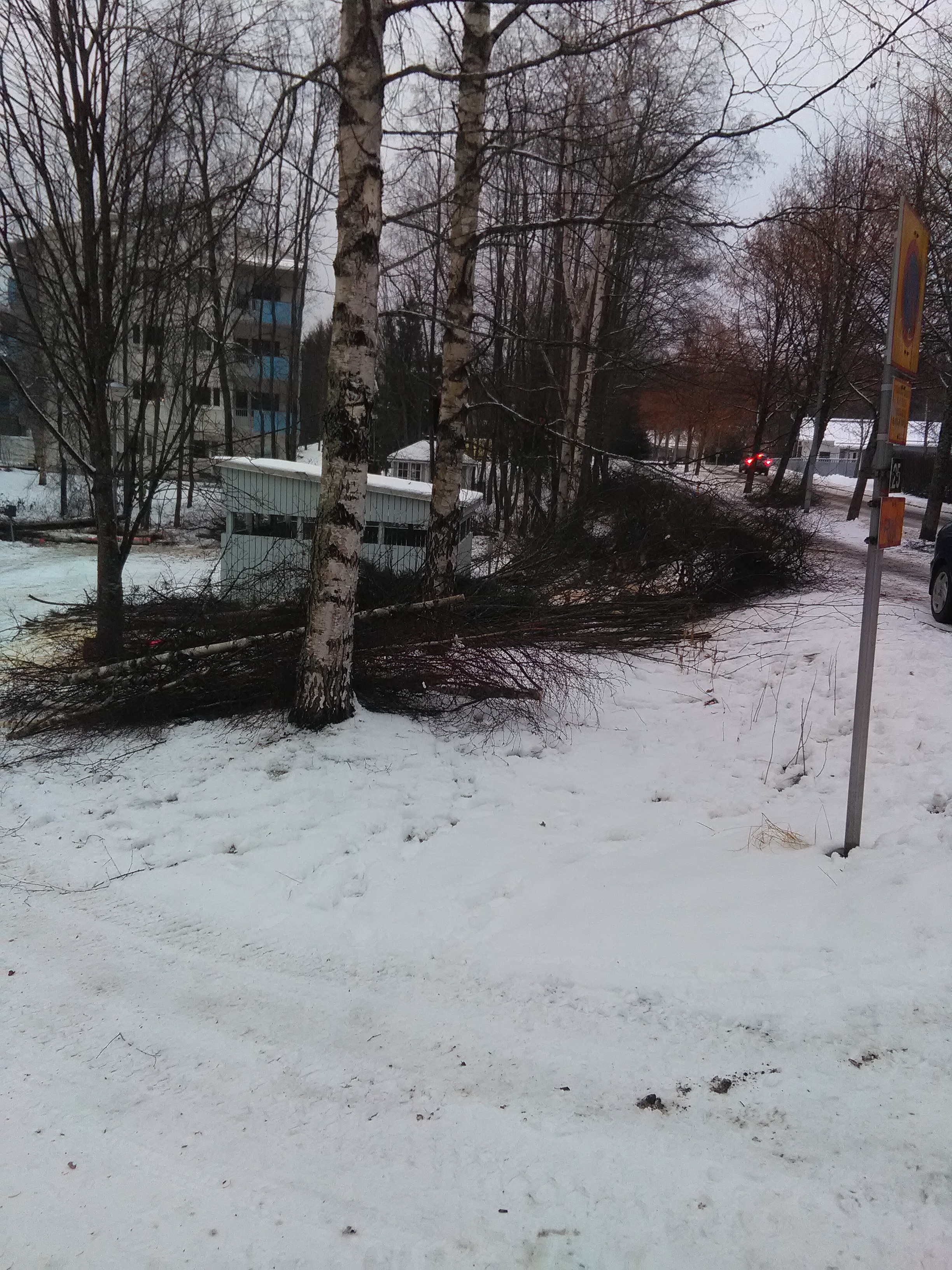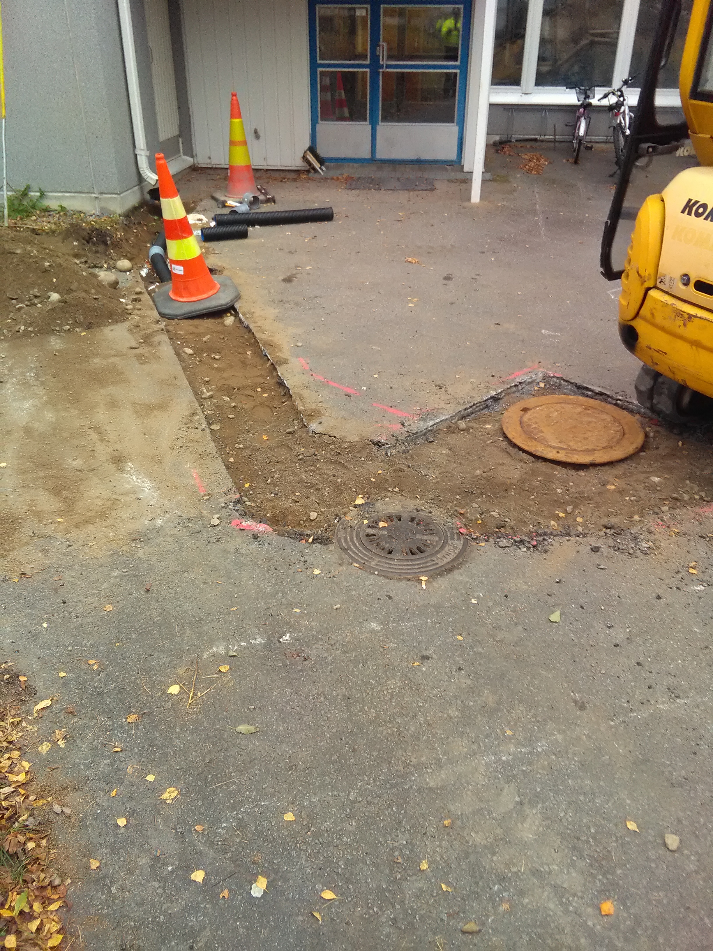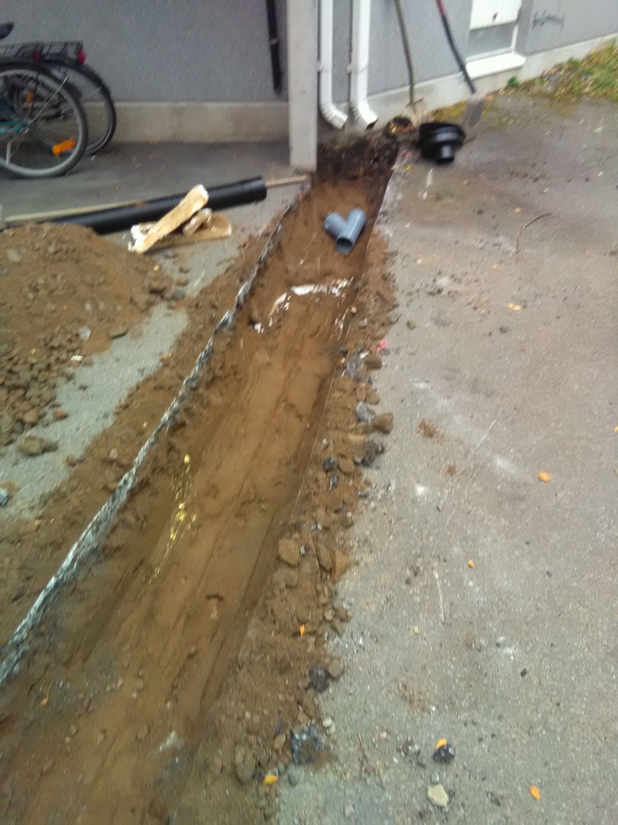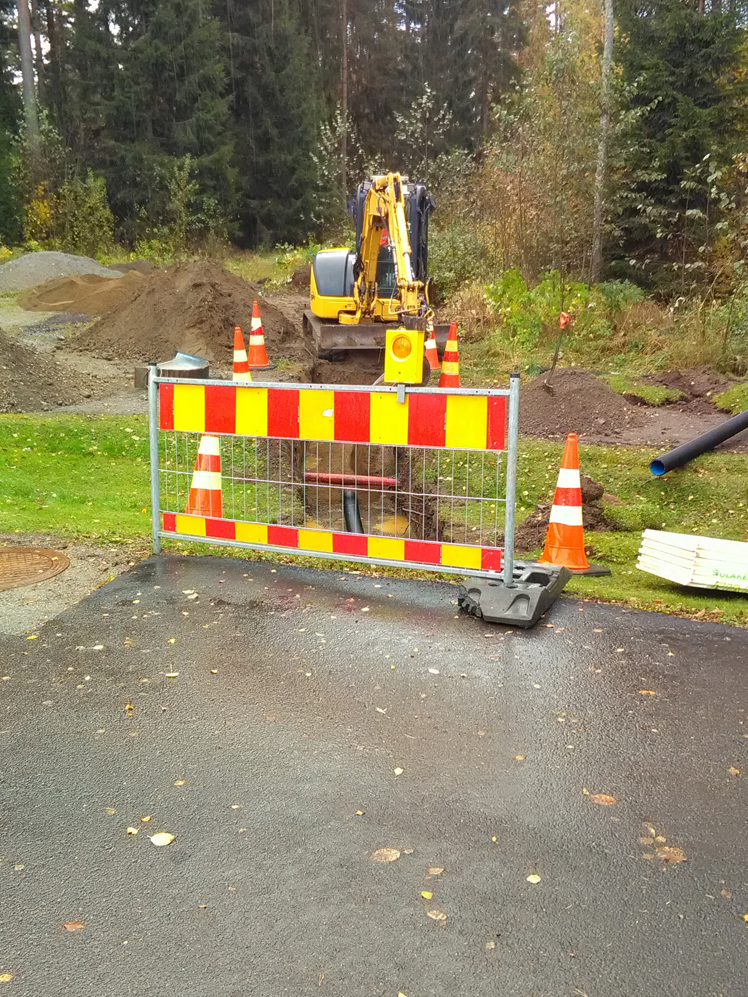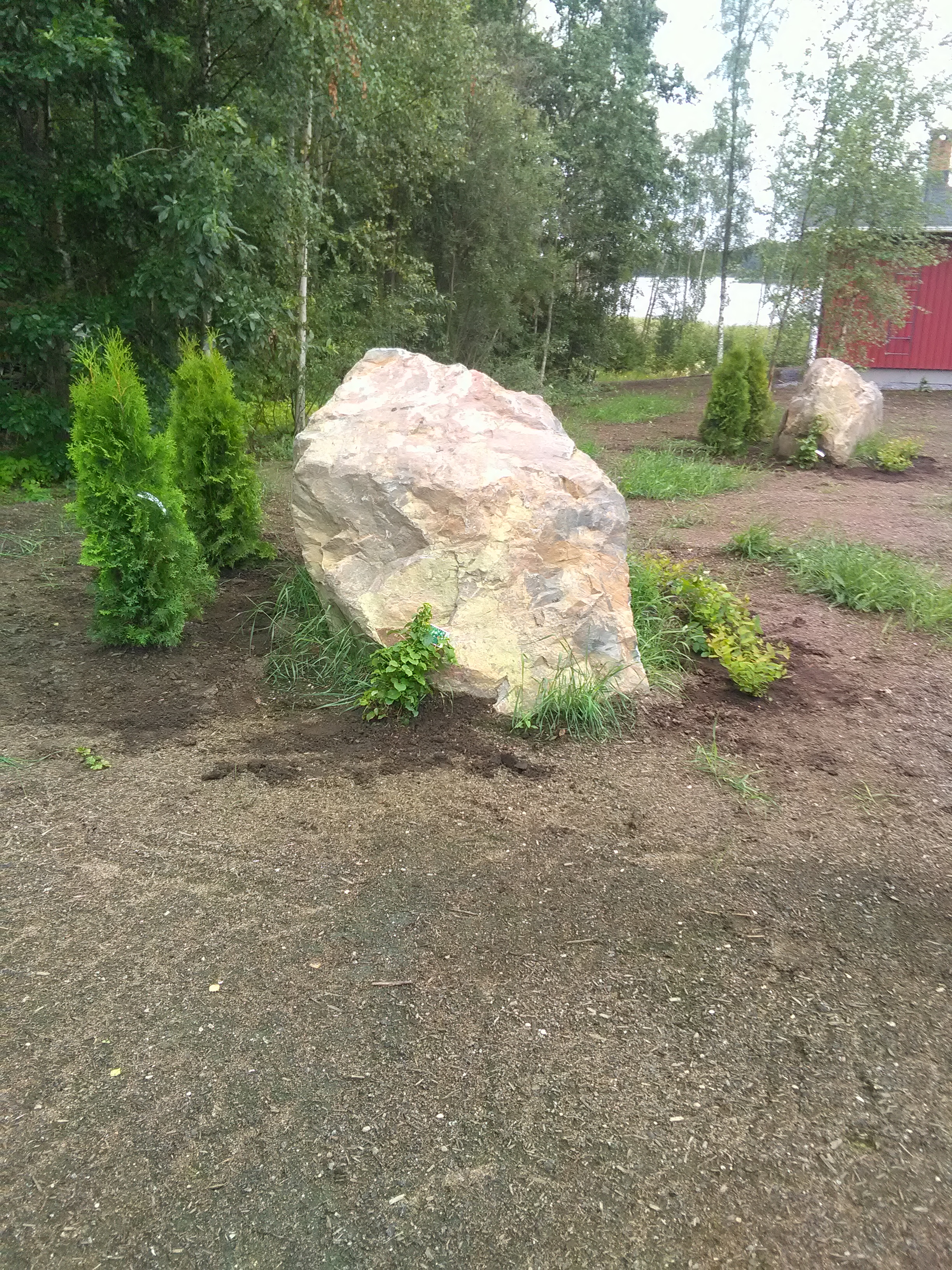 Kuvia tehdystä puutarha, maanrakennustöistä ja pihapuiden kaatamisesta.
