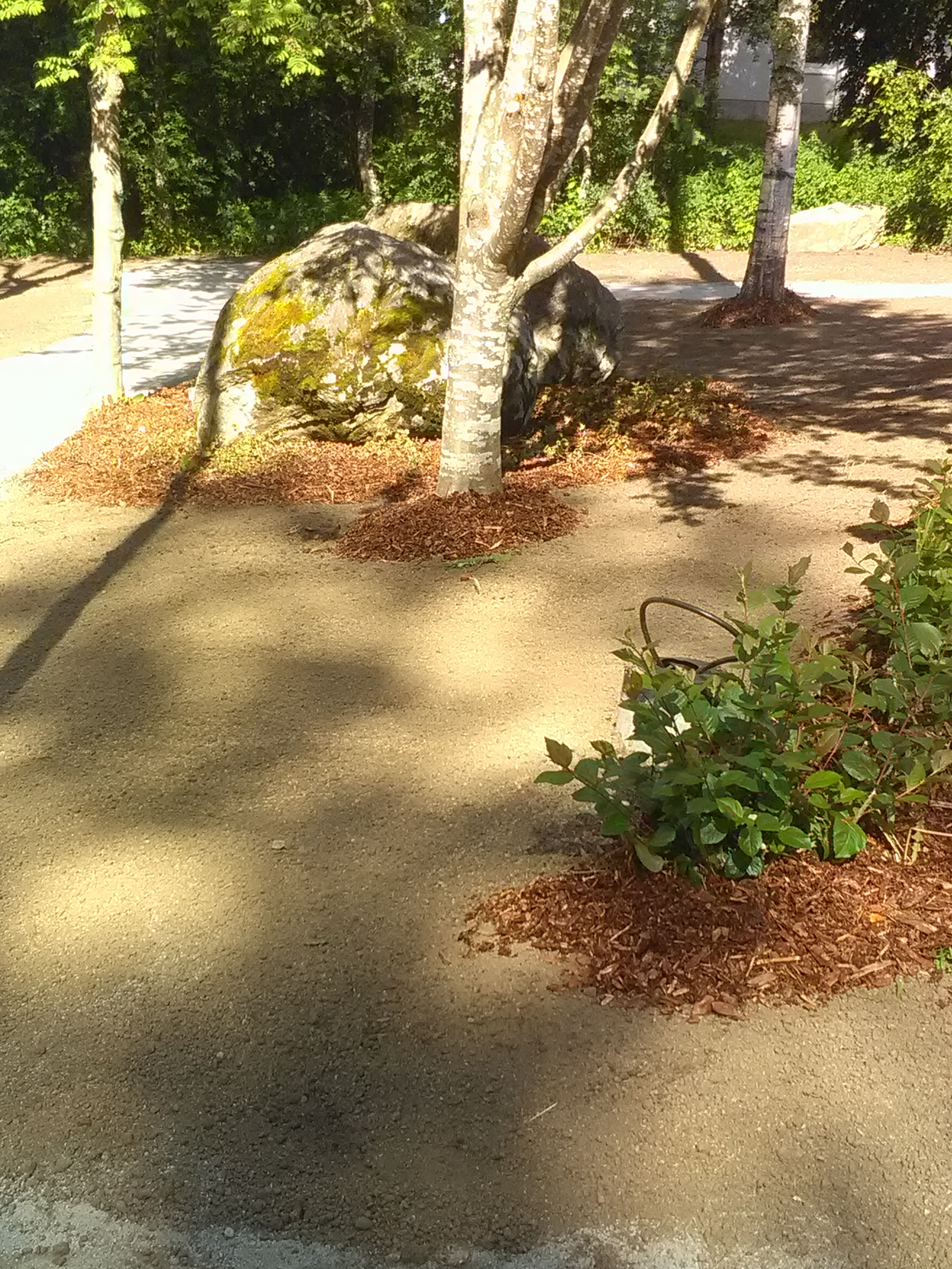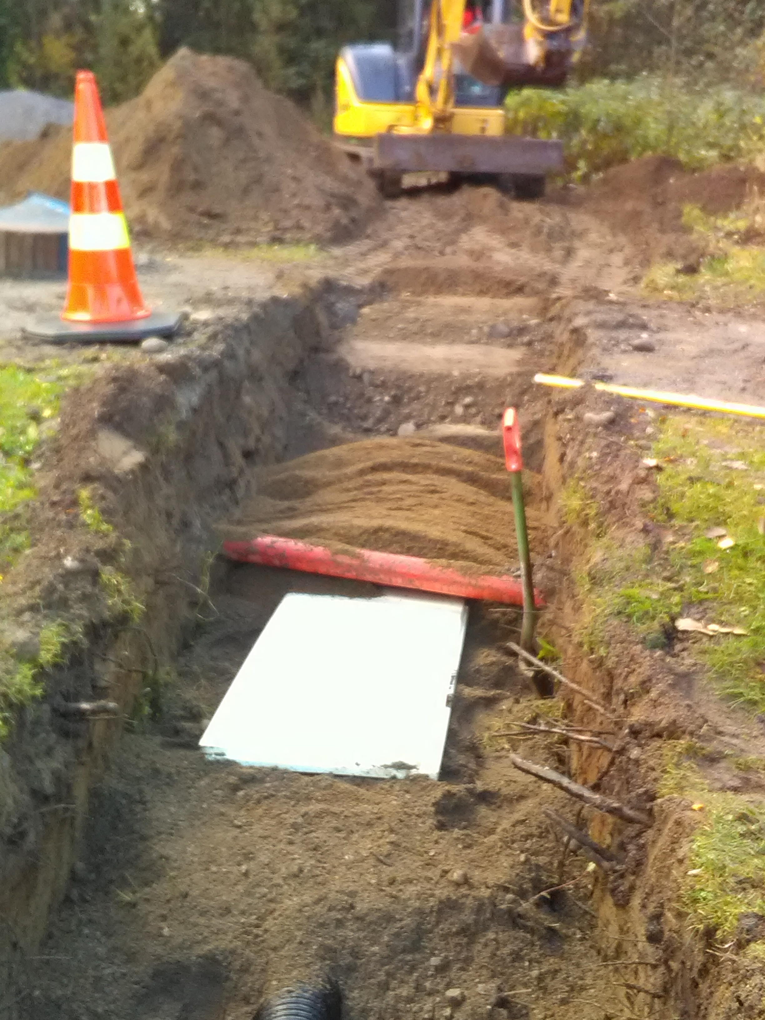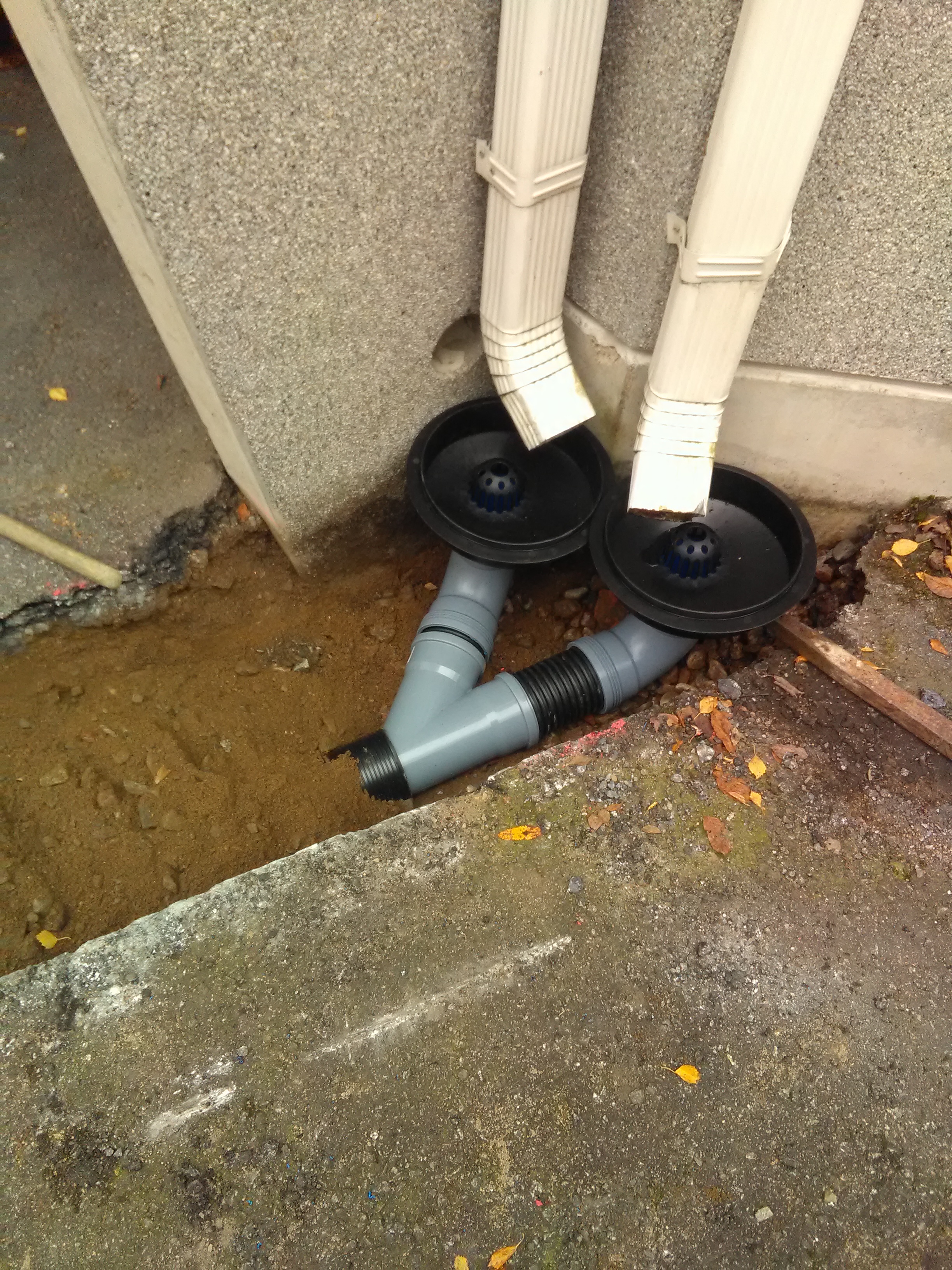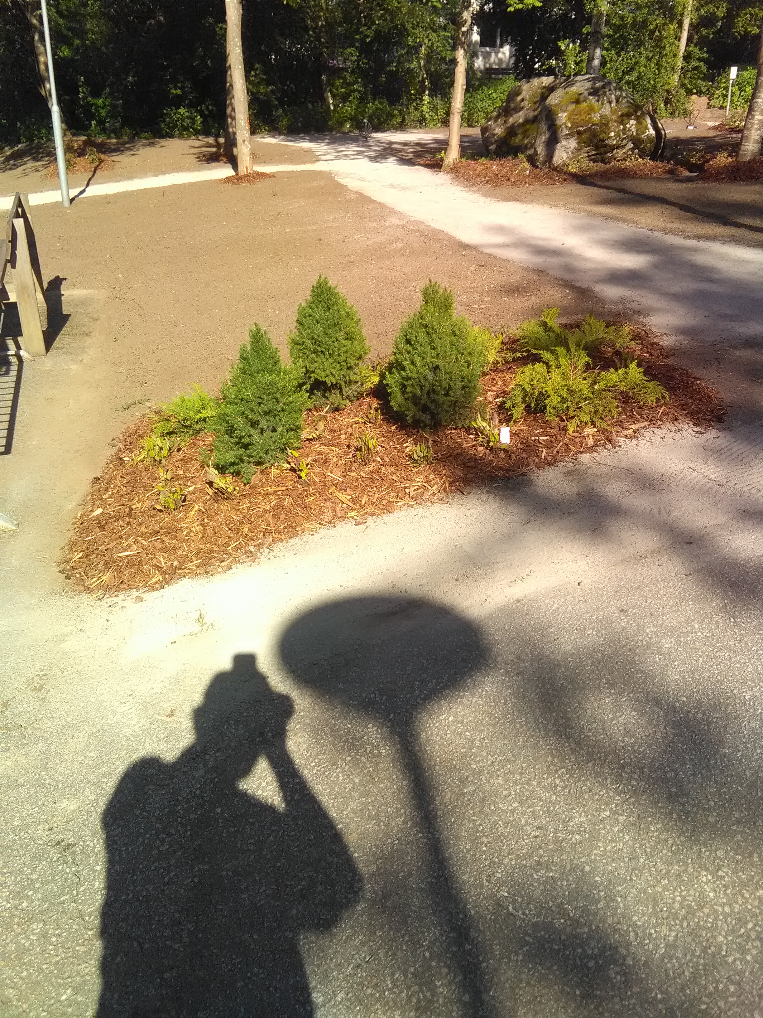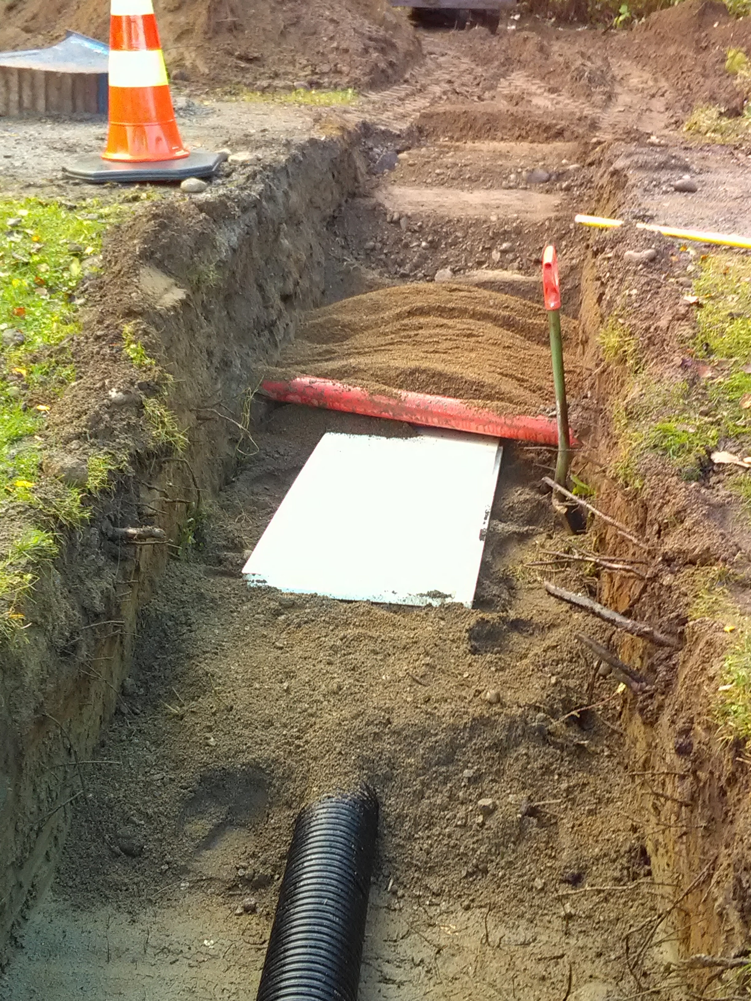 Kuvia tehdystä puutarha, maanrakennustöistä ja pihapuiden kaatamisesta.
